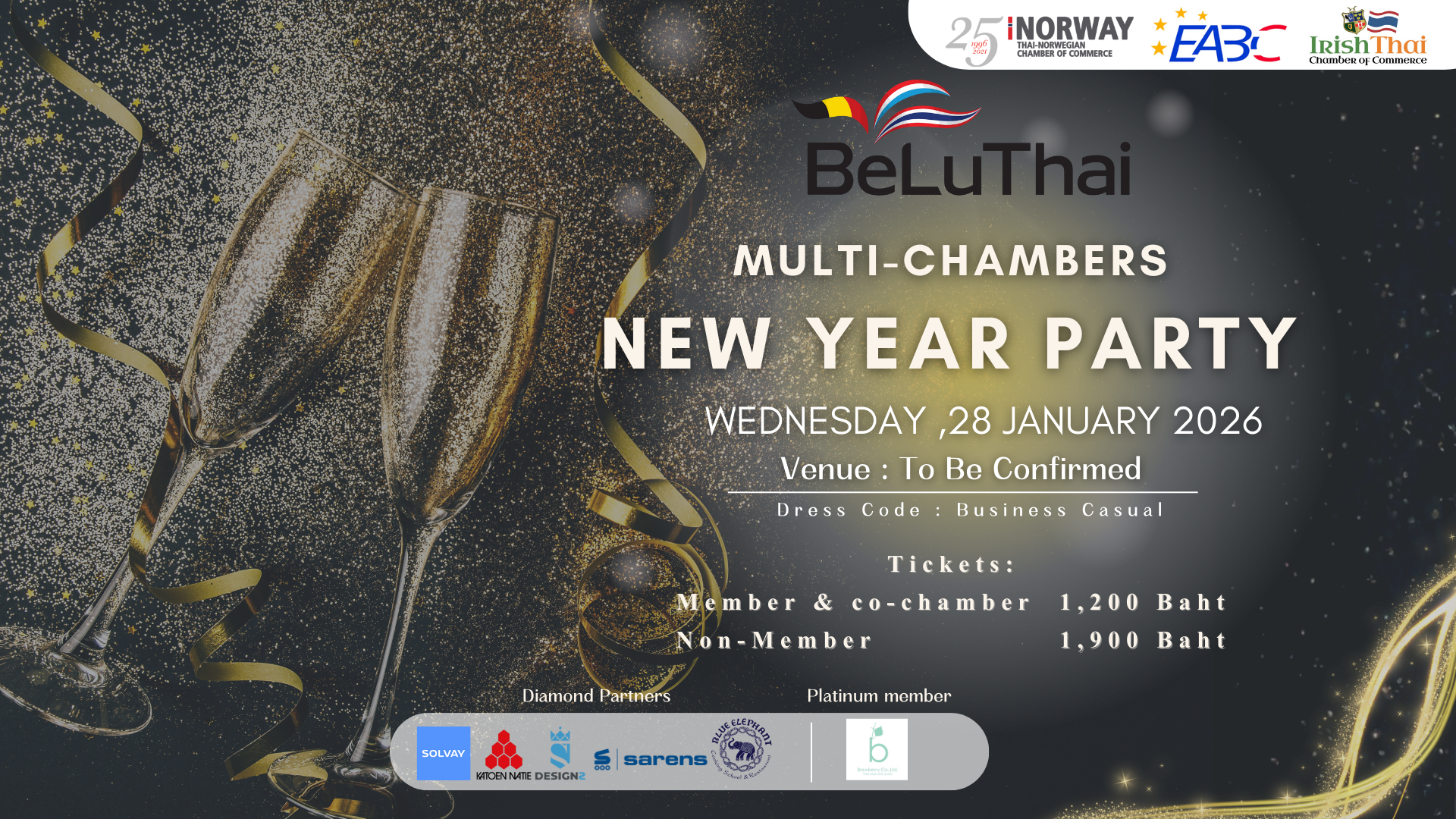 🥂 Celebrate the arrival of 2026 in style at the BeLuThai Multi-Chambers New Year Party! Enjoy a night of elegance, networking, and festive cheer. Mark your calendar and stay tuned for the venue!